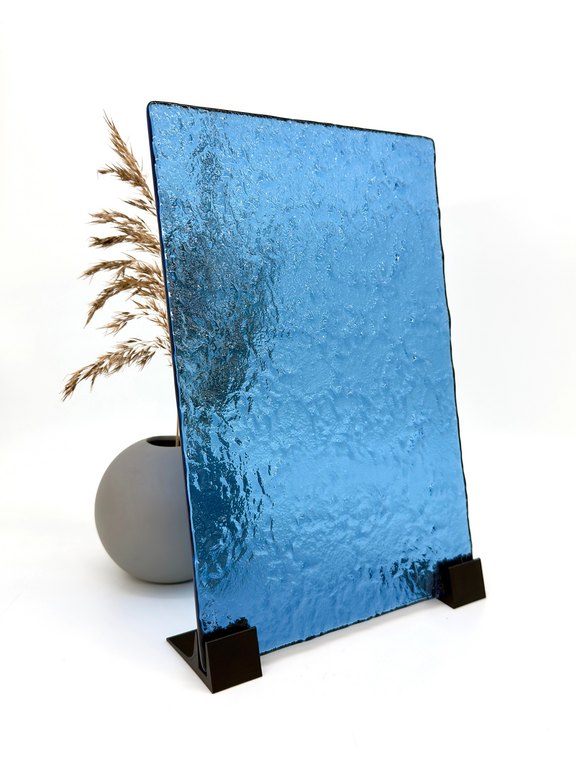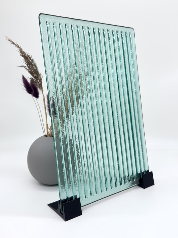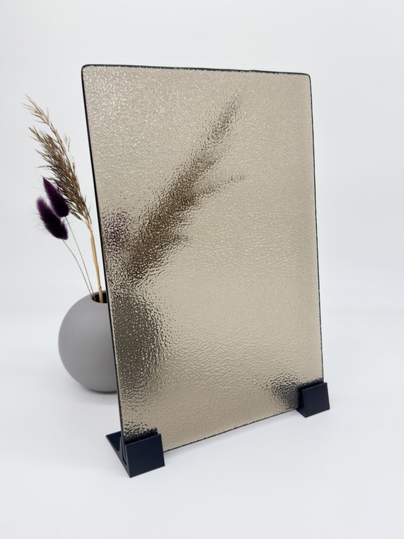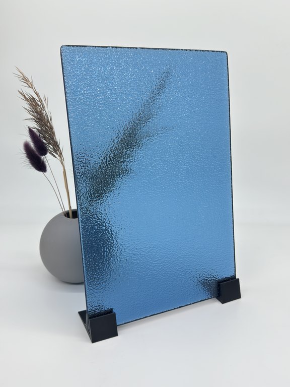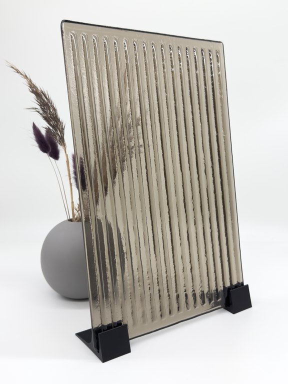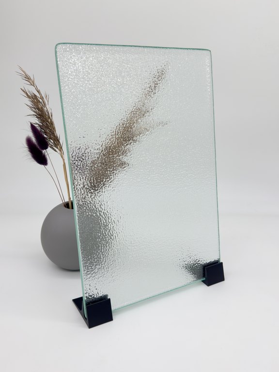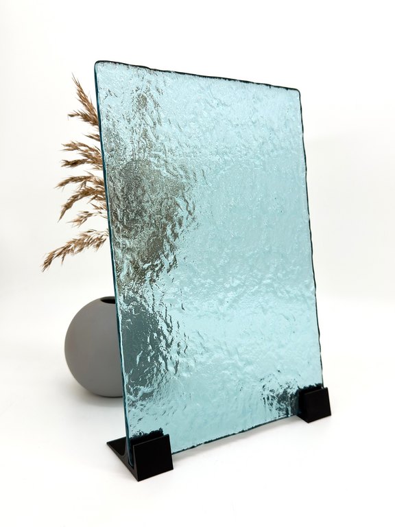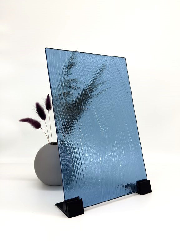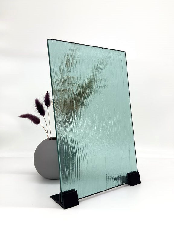 Artisan glasses have eight different shades from which to choose the one that suits you; clear, optiwhite, Azur (turquoise), green, blue, bronze, gray and dark gray. With artisan glasses, you can create vision protection thanks to the patterned surface without obstructing the flow of light from one space to another. In artisan glasses, we always talk about the patterned, rougher side and the smoother, shiny side. This means that the side that was against the bottom of the kiln is more vivid and the pattern is more raised, while the other side is smoother (never completely smooth) and shinier. Find out more about artisan glasses on our website.