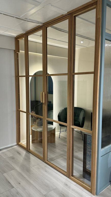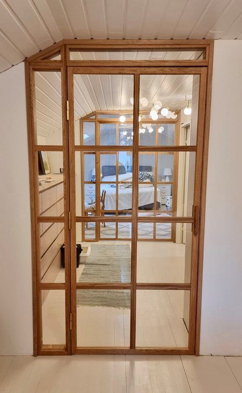 Puukarmilliset lasiseinät ja -ovet