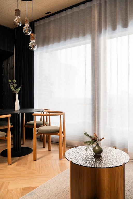 Northern Lights Village Resortin Polar Sky Suiteissa arkkitehtuuri ja sisustus on suunniteltu kokemaan revontulet ja pohjoisen taivas osana oleskelua. Panoraamanäkymät, luonnonmateriaalit ja rauhallinen värimaailma tukevat tilan tarkoitusta: hidastaa, rauhoittaa ja antaa tilaa pohjoiselle valolle.