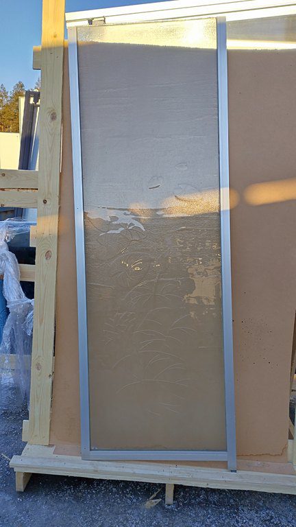 kaikki lasiovet sisältävät oveen kuuluvat saranat ja vetimet (ovet ovat suoraan aukkoon asenteisia)