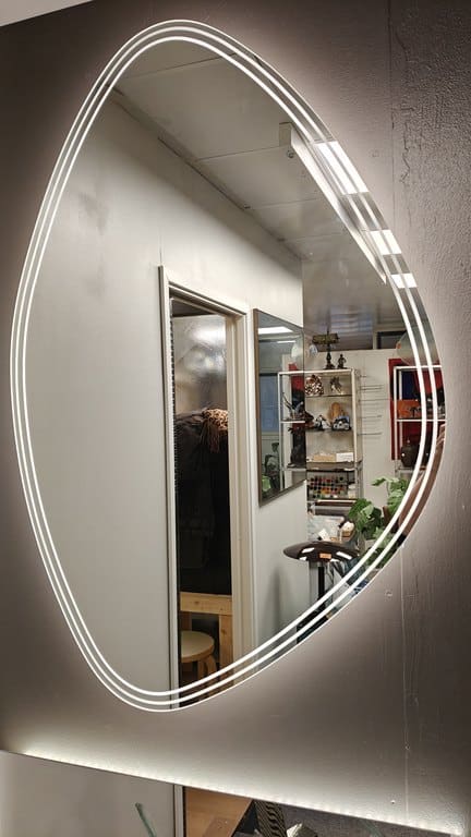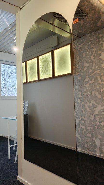 Tiloissamme Kuopion Neulamäessä ovat tuotantotilamme, iso peili- ja lahjatavaramyymälä sekä monipuolinen showroom, josta saa paljon ideoita lasilla sisustamisesta. Myymälästämme löydät myös kattavan valikoiman tiffany- ja sulatuslaseja sekä tarvittavat työkalut taidelasien tekemiseen.