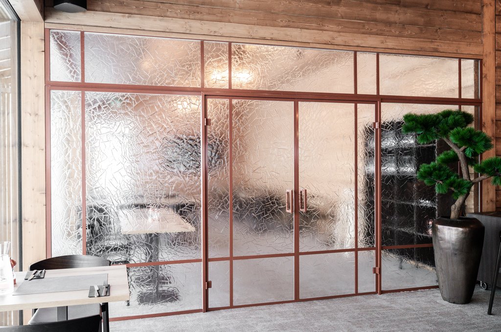 – artesaanilasinen lasiseinä pariovilla